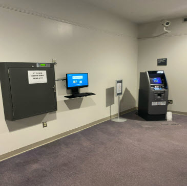 For vehicles parked outside in Lot 14, please use the key box located near the Government Center lobby. As you exit the reception and security desk area in the lobby, turn left down the hall and the key box will be on your left near the NextMark ATM. The lobby is on the second floor of the building. All outside parking spaces are numbered.